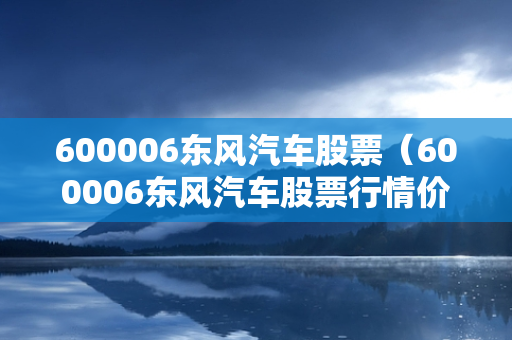 600006东风汽车股票(600006东风汽车股票行情价格)