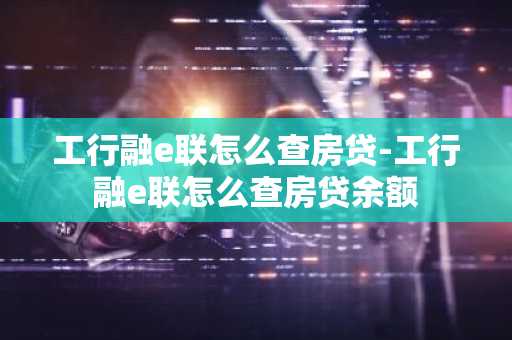 工行融e联怎么查房贷-工行融e联怎么查房贷余额