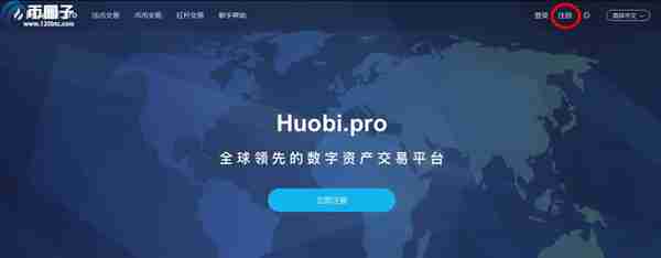 1. 点击火币Pro首页右上角的注册,进入注册页面。